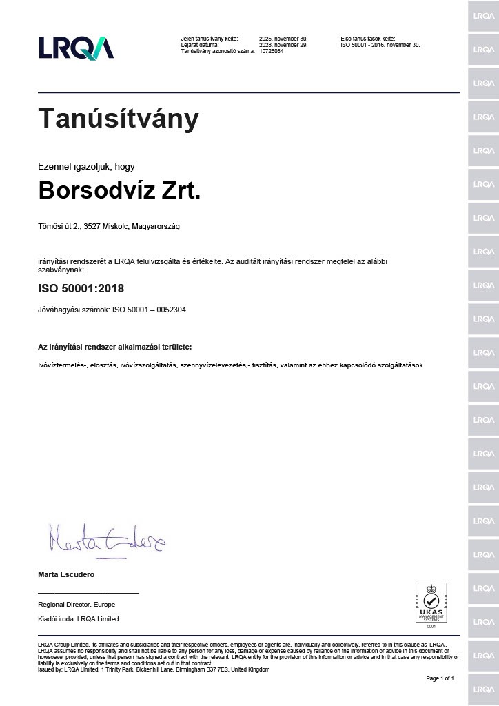 Tanúsítvány - ISO-50001
